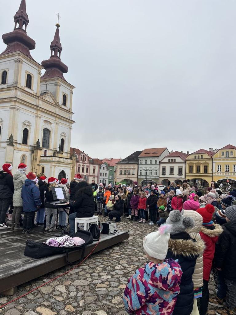 Sbor školy vybraný z žáků z 1. i 2. stupně pod vedením Michaely Dlouhé za přítomnosti rodičů i našich žáků, kteří přišli podpořit své spolužáky a nasát vánoční atmosféru, zapěl hned několik písní laděné do vánočního tématu. Některé třídy se ještě prošly po historickém centru Kadaně a podívali se na vánoční stromek, který nazdobila naše škola. Děkujeme za mile strávený čas všem zúčastněným.