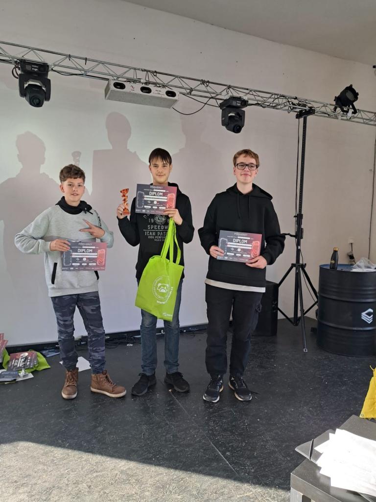 V úterý 26. listopadu se na krajském turnaji v ústeckém komunitním centru Bedna setkalo 15 týmů základních škol. Skvělý úspěch zařídila skupina složená ze tří žáků ZŠ Na Podlesí: Nitai Dušek, Jakub Jindra a Jan Wilczek. Po souboji s nejlepšími z celého kraje se postavila trojice na stupně vítězů. Zápal, přemýšlení a strategie jim zařídily konkrétně bronzovou medaili. Z Ústí nad Labem jsme tak odjížděli ve výborné náladě a s radostí z úspěchu. Děkujeme chlapcům za reprezentaci školy.